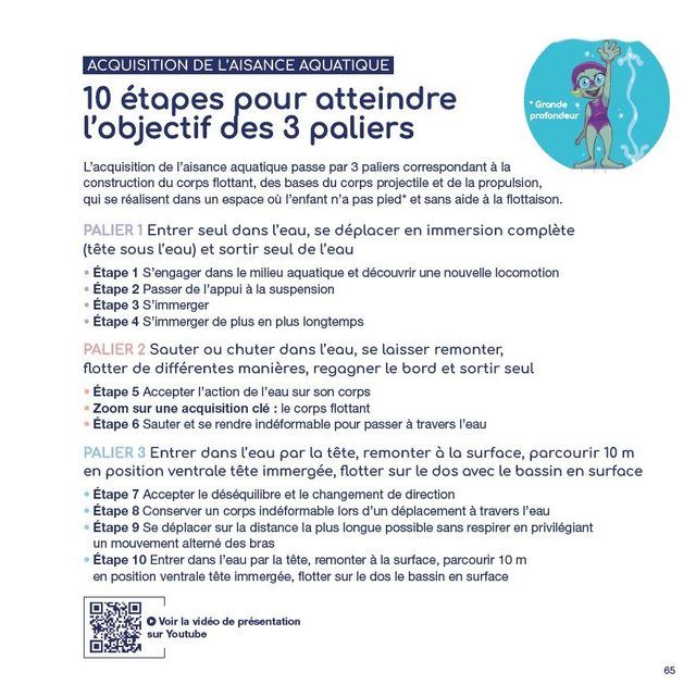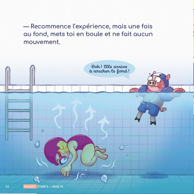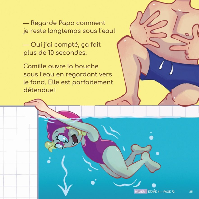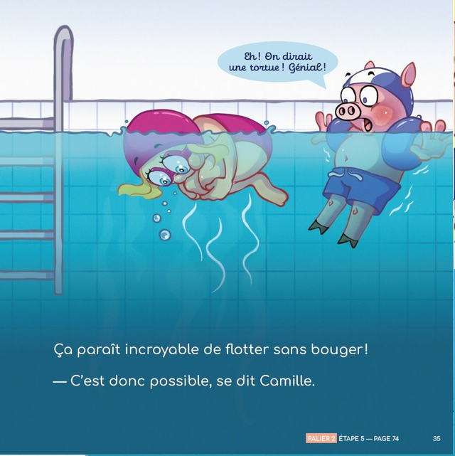Camille veut des brassards mais elle se rend compte qu'elle peut flotter sans bouée. Nager est toute une aventure, il y a tellement de choses à expérimenter sous l'eau. Comme Camille, découvre les étapes incontournables pour être à l'aise dans l'eau.